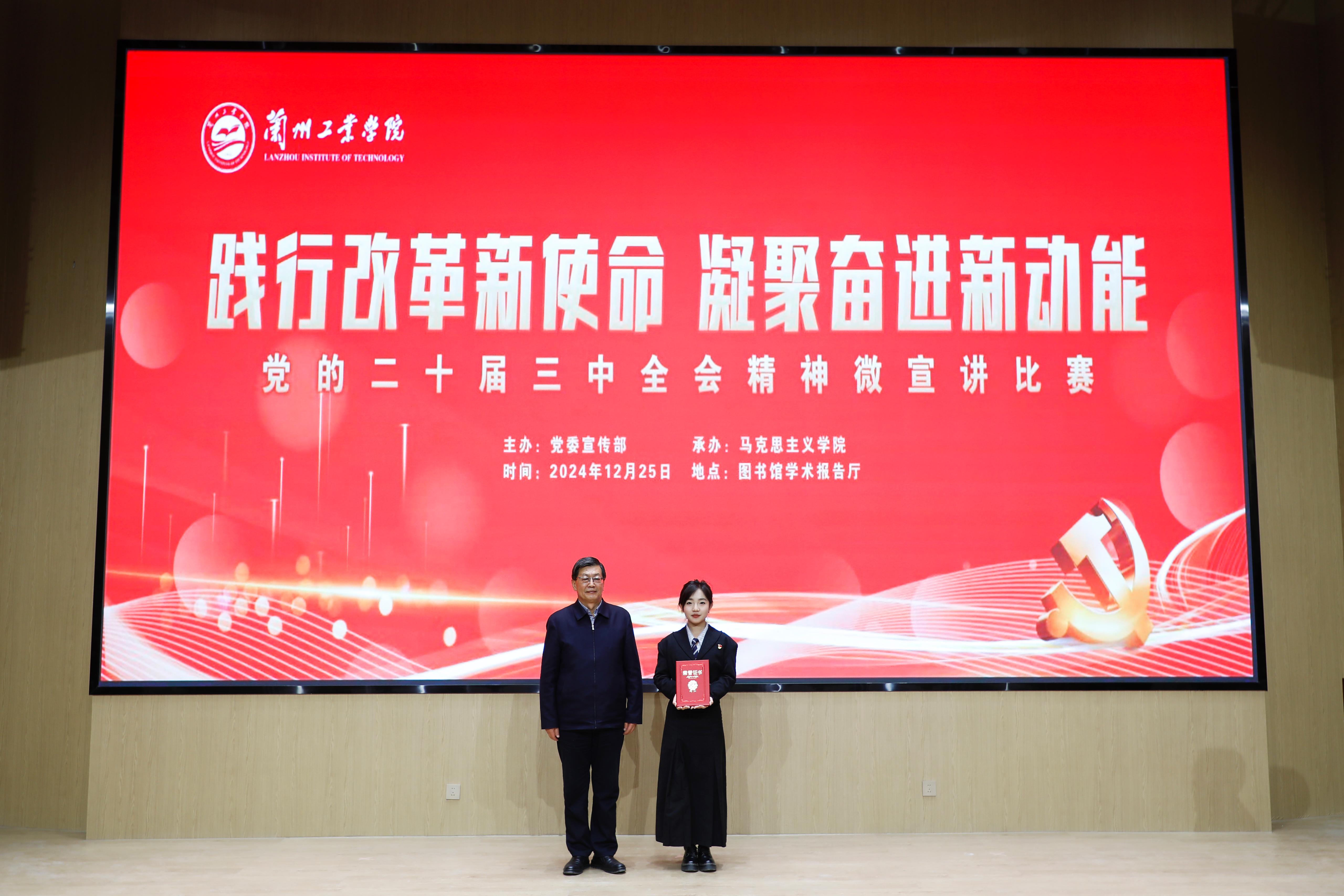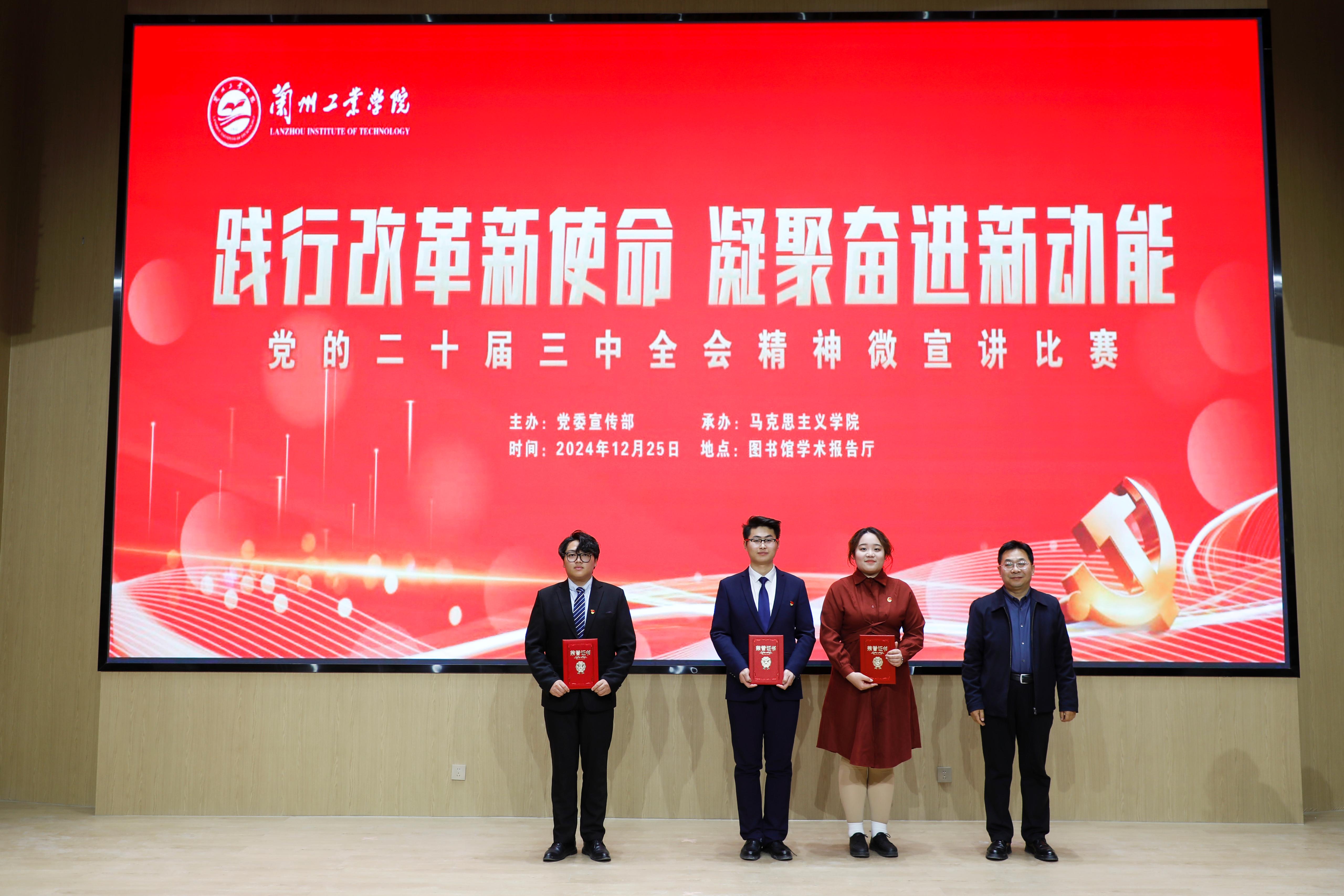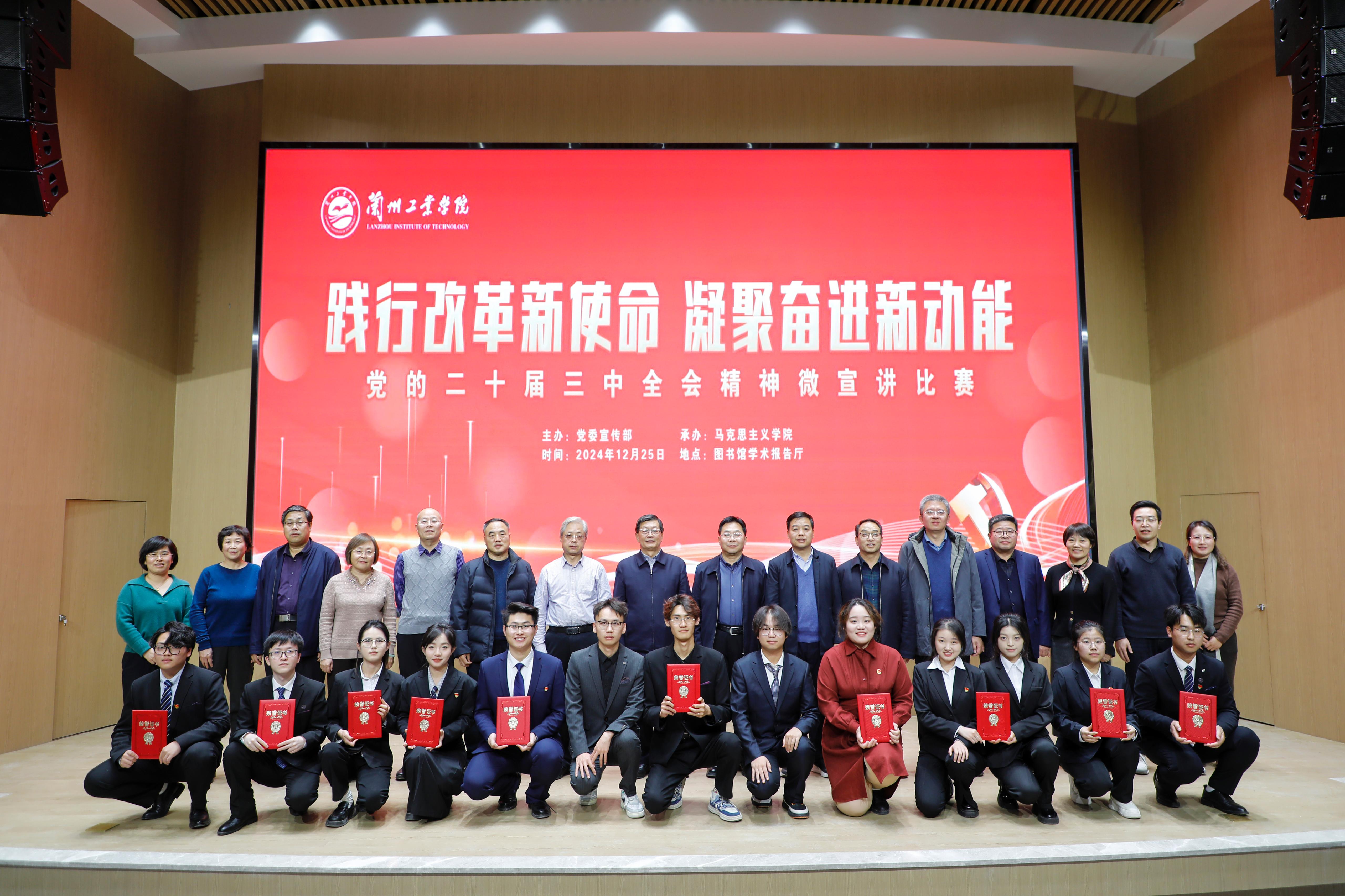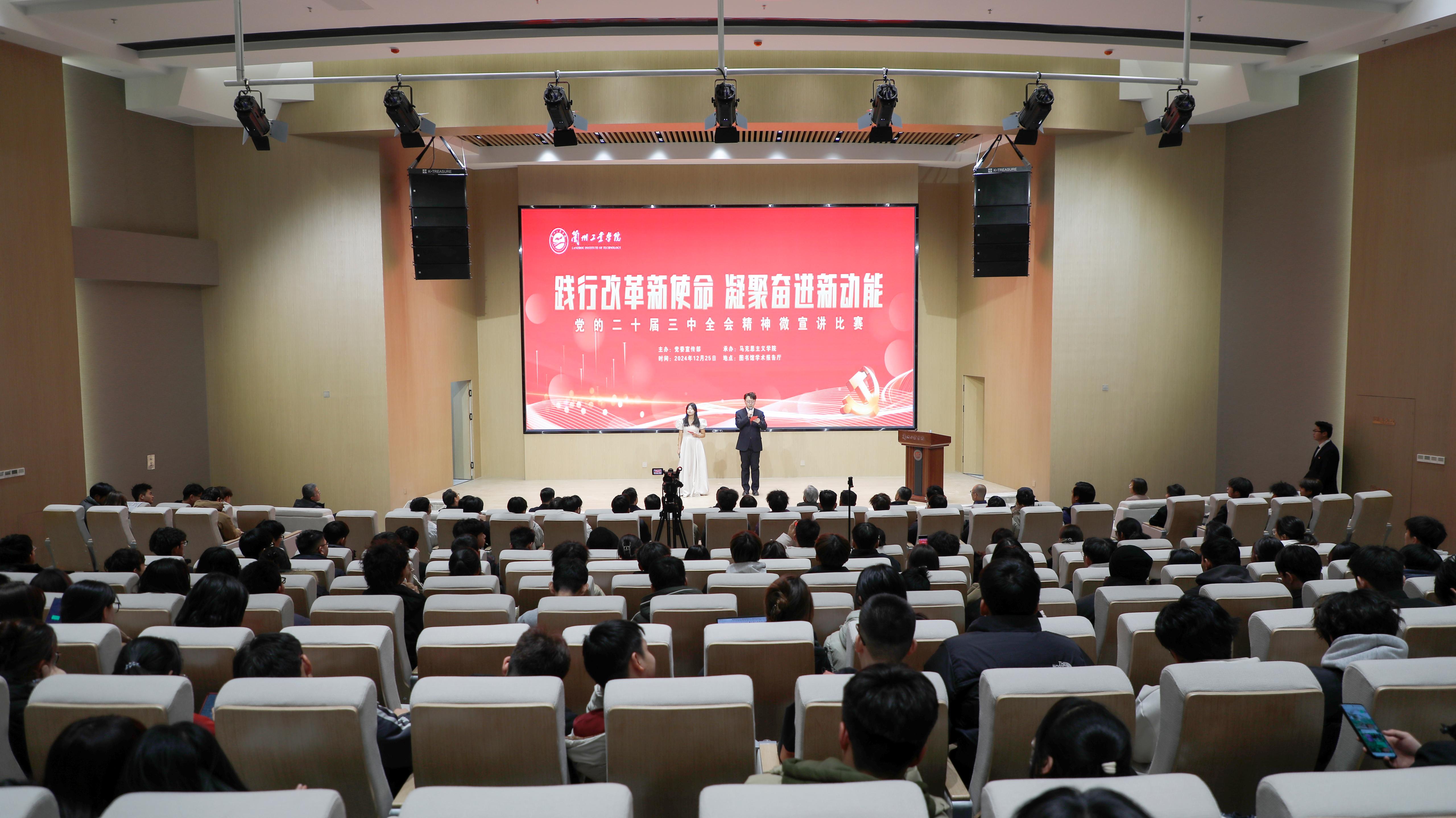 为进一步深入学习宣传贯彻党的二十届三中全会精神,不断增进全校师生对党的创新理论的政治认同、思想认同、理论认同、情感认同,持续营造学习宣传贯彻的浓厚氛围,切实让党的二十届三中全会精神在学校落地生根、开花结果,12月25日晚,学校在图书馆报告厅举办党的二十届三中全会精神微宣讲比赛。全体校领导出席会议并为获奖学生颁奖。