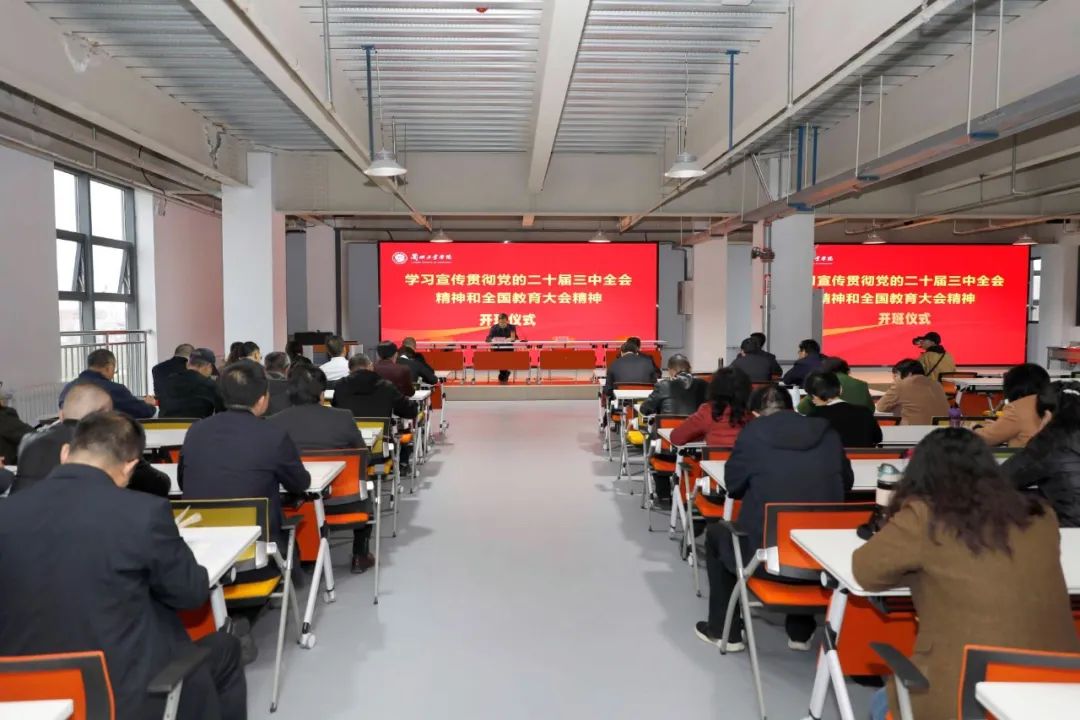 为深入学习宣传贯彻党的二十届三中全会精神和全国教育大会精神,引导广大党员干部和师生员工准确把握全会的重大意义和核心要义,切实把思想和行动统一到党的二十届三中全会精神和全国教育大会精神上来,10月15日—18日,学校举办学习宣传贯彻党的二十届三中全会精神和全国教育大会精神培训班。校党委书记韦尧兵主持开班仪式并宣讲党的二十届三中全会精神,校党委副书记、校长刘新辉作全国教育大会精神宣讲。在家校领导出席会议。