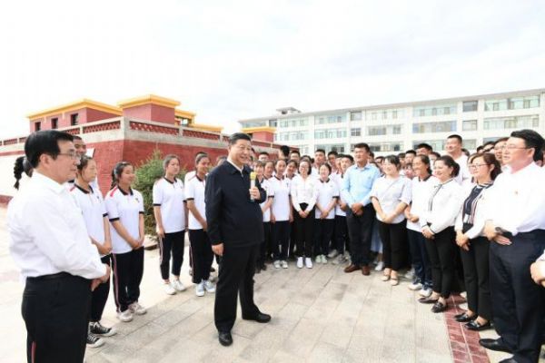 习近平总书记在张掖市山丹培黎学校同师生亲切交流