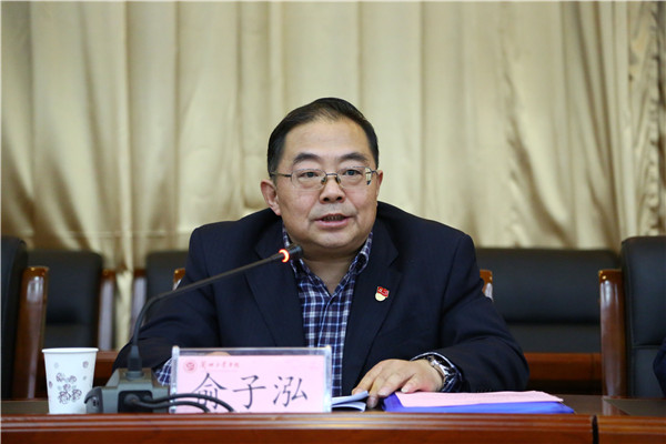 俞子泓指出,2018年要重点抓好四个方面的工作:一是抓队伍。学校要发展,班子是关键。加强领导班子建设,是党自身建设的重要内容,也是关乎学校事业发展的决定因素。从严治党,重在从严管理干部。要严格按照党管干部原则,坚持正确选人用人导向,重点加强对年轻干部,特别是教学一线的后续管理人才的选拔任用和培养,以“功成不必在我”的情怀为学校的永续发展打好基础。二是抓基层。全面从严治党,基层组织是保障。各级党组织要强化“党政同责”、“一岗双责”意识,进一步完善学校党建工作责任体系,认真开展好党总支(支部)书记抓基层党建述职评议考核工作;认真开展“不忘初心、牢记使命”主题教育;进一步创新党日活动形式,丰富活动内容,积极开展支部主题党日活动。三是抓思政。推进全面从严治党,首要任务是加强思想政治建设。要把学习习近平新时代中国特色社会主义思想和持续贯彻落实全国全省高校思想政治工作会议精神结合起来,着力在抓党建、全面从严治党过程中加强思想政治工作,在抓转型、 全面深化教育教学改革过程中加强思想政治工作,在抓“两课”,全面发挥主渠道、主阵地作用过程中加强思想政治工作。四是抓作风。作风问题本质上是党性问题,抓好作风建设,要在持续推进党风廉政建设、狠抓作风建设、加强纪律建设三方面下功夫。