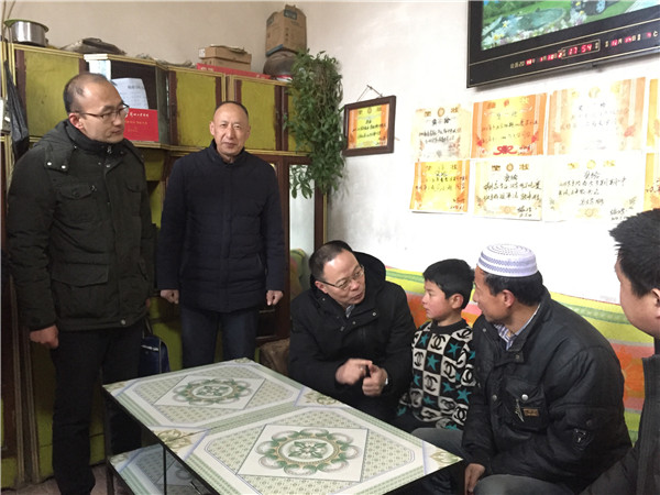 每到一处不打招呼直接入村入户,当走到我校帮扶点——胡林家乡左家村时,向我校驻村挂职第一书记、工作队长马俊年详细询问了精准扶贫精准脱贫工作遇到的实际困难和问题,亲切慰问了学校帮扶贫困户马麻乃家,对学校精准扶贫的做法和成效以及派驻干部冒着严寒,踏着积雪,翻山越岭,走村入户,了解实情给予充分肯定。他指出:要深入学习贯彻习近平新时代中国特色社会主义思想和党的十九大精神,做足精准文章,下足“绣花”功夫,把“一户一策”做细致做扎实,夯实扶贫脱贫基础。
