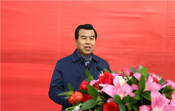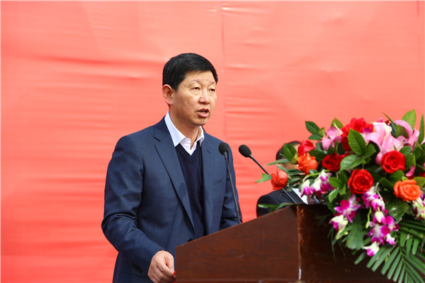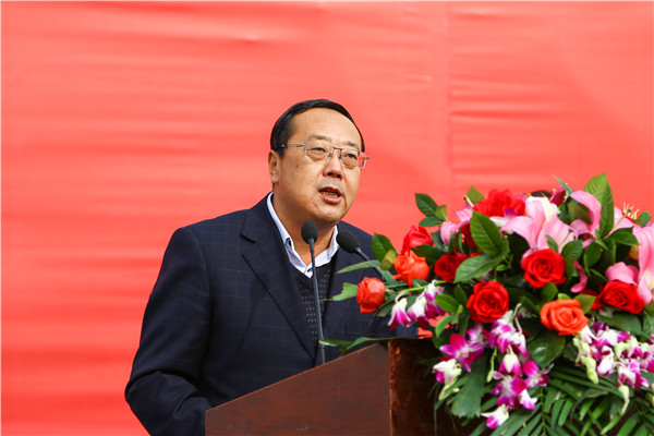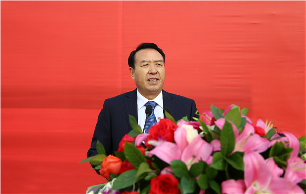 甘肃省教育厅副厅长、兰州新区职教园区管委会主任陈保平讲话并宣布学校兰州新区新校区建设开工