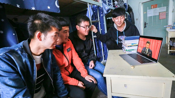 学生在宿舍收看党的十九大开幕会直播