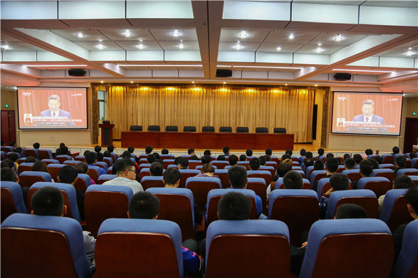 学校广大师生员工通过电视、网络等收看了习近平总书记代表第十八届中央委员会作大会报告的实况。从办公楼到学生活动中心,从学校各学院到学生宿舍、田径运动场、学术报告厅,多个分会场中,校领导、教师、离退休老党员等和风华正茂的年轻学子一起,共同关注这一历史性的盛会。大家一致认为,党的十九大是中国共产党发展历史上的又一座里程碑,习近平总书记所作的大会报告,高屋建瓴,内涵丰富,立意深远,意义重大。