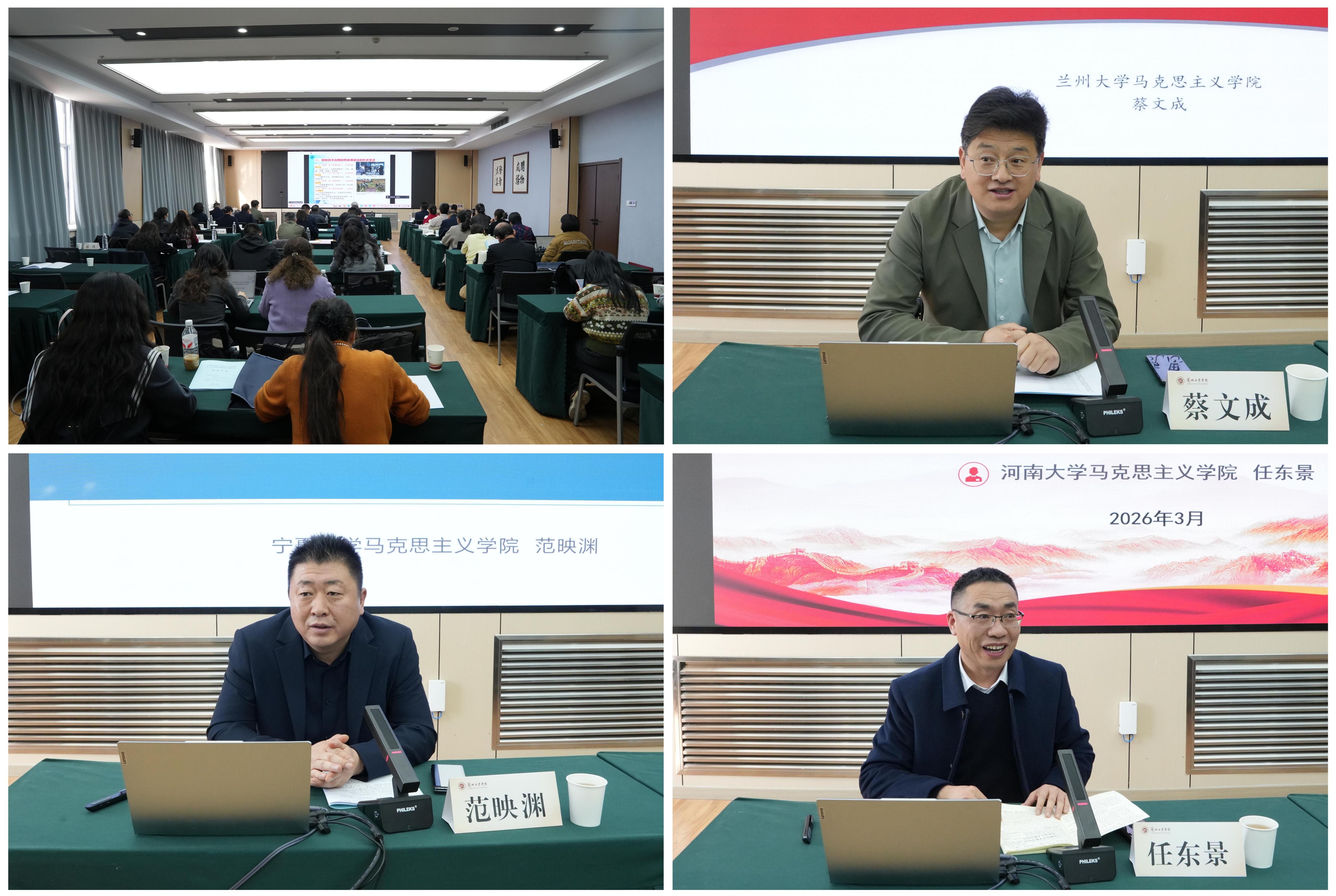 在随后召开的思政课建设学术研讨会上,燕连福、蔡文成、范映渊、任东景分别围绕数智技术赋能思政课、马克思主义学科高质量发展、讲好新时代思政课、红色精神融入思政课等主题作了主旨报告。学术研讨环节由甘肃政法大学马克思主义学院院长王瑞萍教授主持,我校马克思主义学院院长汤艳春教授作大会总结。
