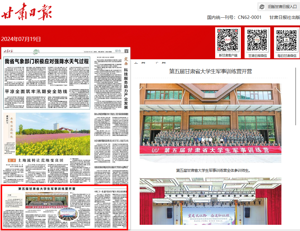 7月18日,由甘肃省教育厅、甘肃省军区战备建设局主办,兰州工业学院承办的第五届甘肃省大学生军事训练营在陇南市开营,来自全省44所高校的220名参训师生将参加为期7天的军事训练活动。