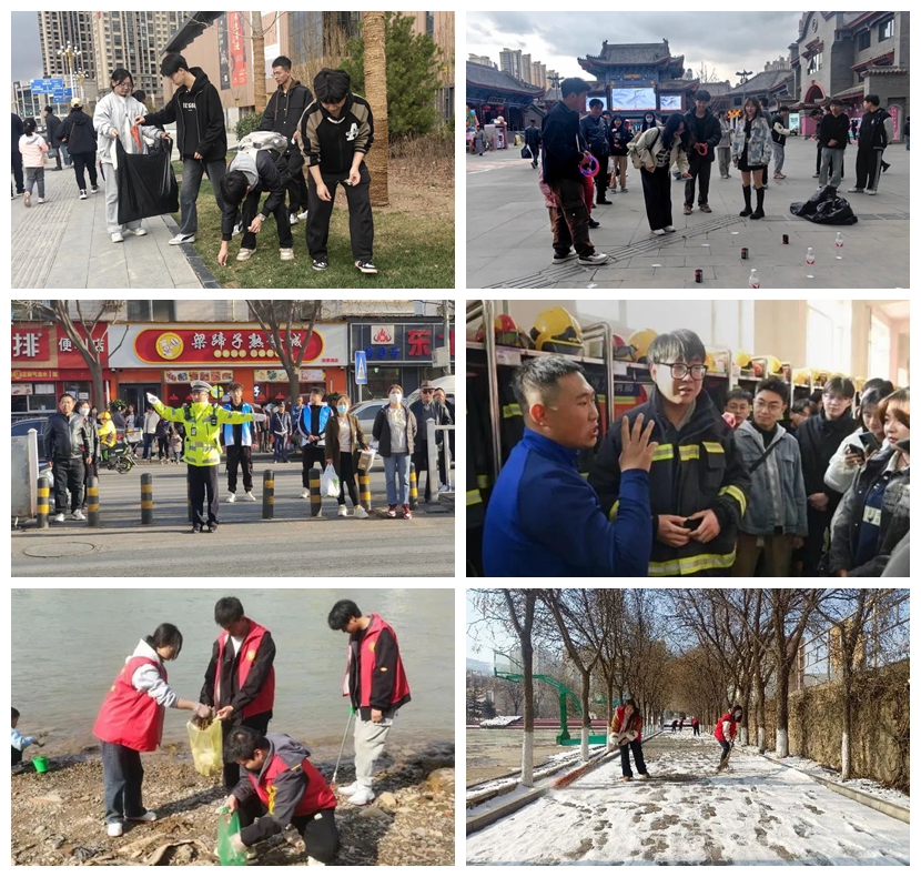我校青年志愿者协会组织志愿者开展了“学雷锋、除冰雪、美校园”志愿服务活动,为学校师生在雨雪天气出行提供了安全保障。计算机与人工智能学院组织学生党员、团员在中山桥畔开展“情系黄河水,保护母亲河”主题活动,同学们手拿垃圾钳和垃圾袋,对黄河岸边进行了“地毯式清理”,捡拾藏匿在角角落落深的塑料袋、包装纸、烟头、饮料瓶等,深入践行生态文明观,开展环保志愿服务活动。材料工程学院在龚家湾第一小学展“弘扬雷锋精神,安全交通伴你行”志愿服务活动,志愿者们积极引领小学生过马路,维护交通秩序。电子信息工程学院前往兰州老街和甘肃省简牍博物馆,举办“空瓶换套圈”活动。通过空瓶兑换套圈的方式让市民们意识到废旧物品的价值,激发群众环保意识。此外,学院还组织同学们开展了义务清洁活动,进一步美化城市环境。广大同学通过志愿活动提升了城市的文明形象,也认识到市容整洁的重要性。