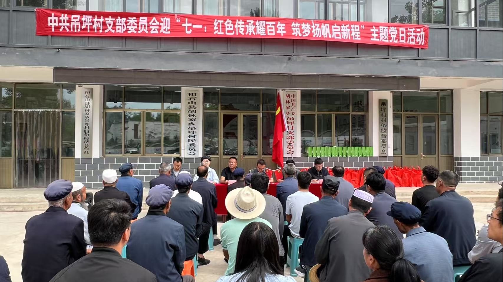 在七一建党节来临之际,学校驻胡林家乡工作队联合村两委举办“红色传承耀百年 筑梦扬帆启新程”主题党日活动。胡林家乡人大主席戴常亮、纪委书记鲍登云、党建办主任马进梅出席活动。