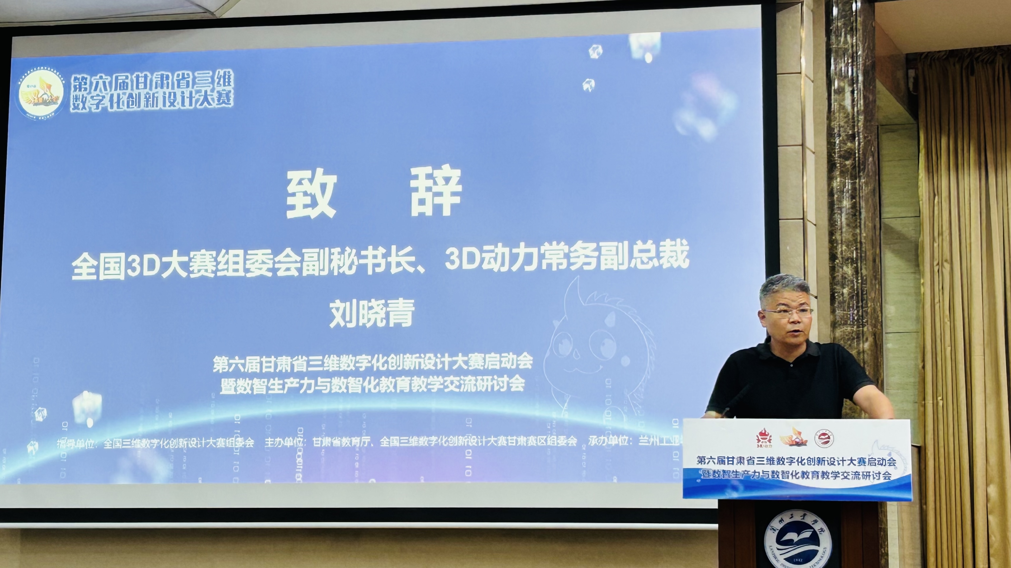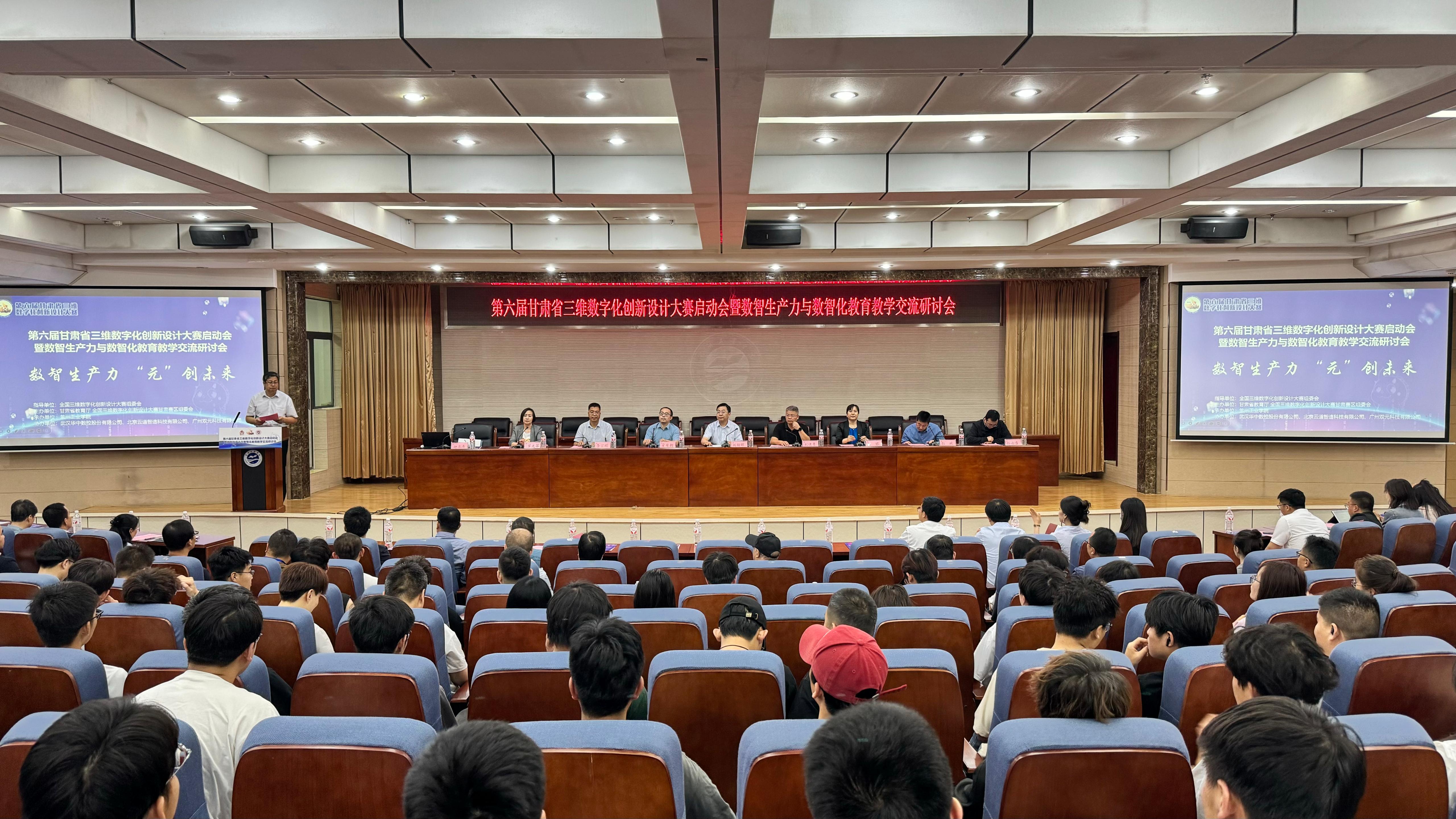 5月19日,第六届甘肃省三维数字化创新设计大赛(简称3D大赛)启动会暨数智生产力与数智化教育教学交流研讨会在我校召开。学校党委副书记、校长刘新辉,全国三维数字化创新设计大赛组委会副秘书长刘晓青,全国三维数字化创新设计大赛甘肃赛区组委会秘书长彭斌出席启动会议,省内12所高校和赞助企业代表参加启动仪式。我校教务处处长赵浪涛主持启动仪式。