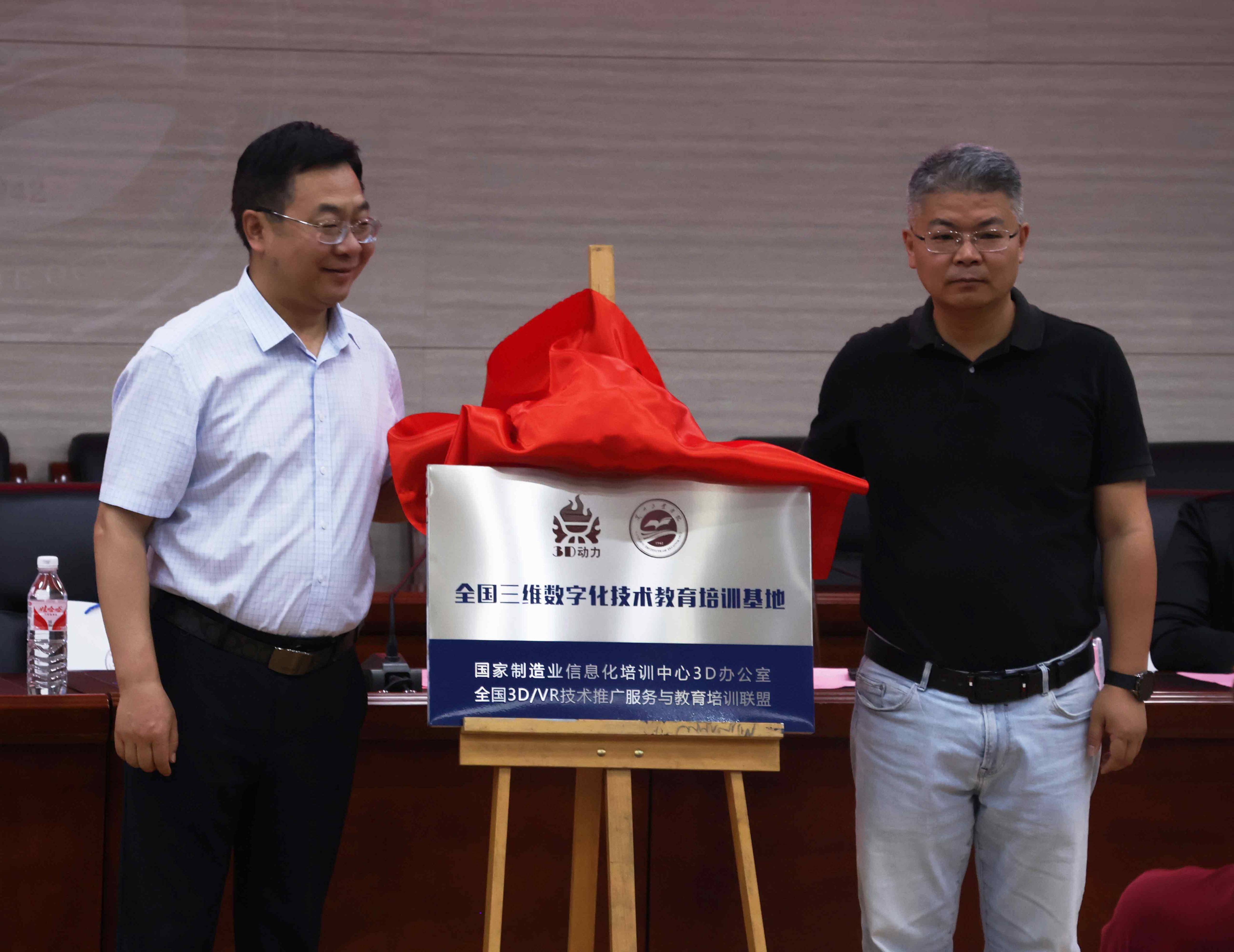 刘新辉、刘晓青共同为“全国三维数字化技术教育培训基地”揭牌。彭斌代表甘肃赛区组委会向本届赛事承办方兰州工业学院移交赛旗,我校机电工程学院院长罗文翠接旗。
